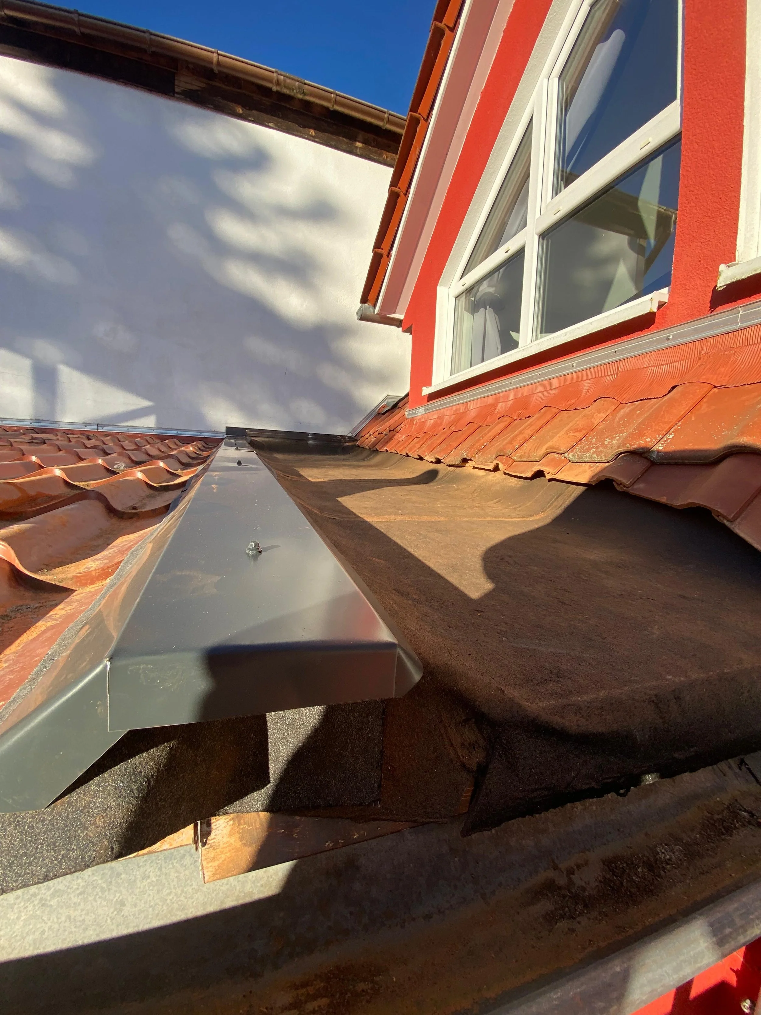 Ein Kunde beklagte schon länger eine undichte Stelle an seinem Dach in Ellrich im Ortsteil Gudersleben. Als Dachdeckerei aus dem Landkreis Nordhausen analysierten wir die Problemstelle an seinem Dach und schafften schnell Abhilfe. Wir führten eine Reparatur am Dach durch und versiegelten die Kehle wieder sicher vor Schlagregen. Dazu musste zunächst die alte Schweißbahn entfernt werden, Anpassungen am Unterbau vorgenommen werden, die leider mangelhaft ausgeführt waren und schließlich mit einer neuen robusten Schweißbahn wieder verschlossen werden. Zudem fertigten wir eine neuen Attika am Übergang der Dächer als Dachklempner an.